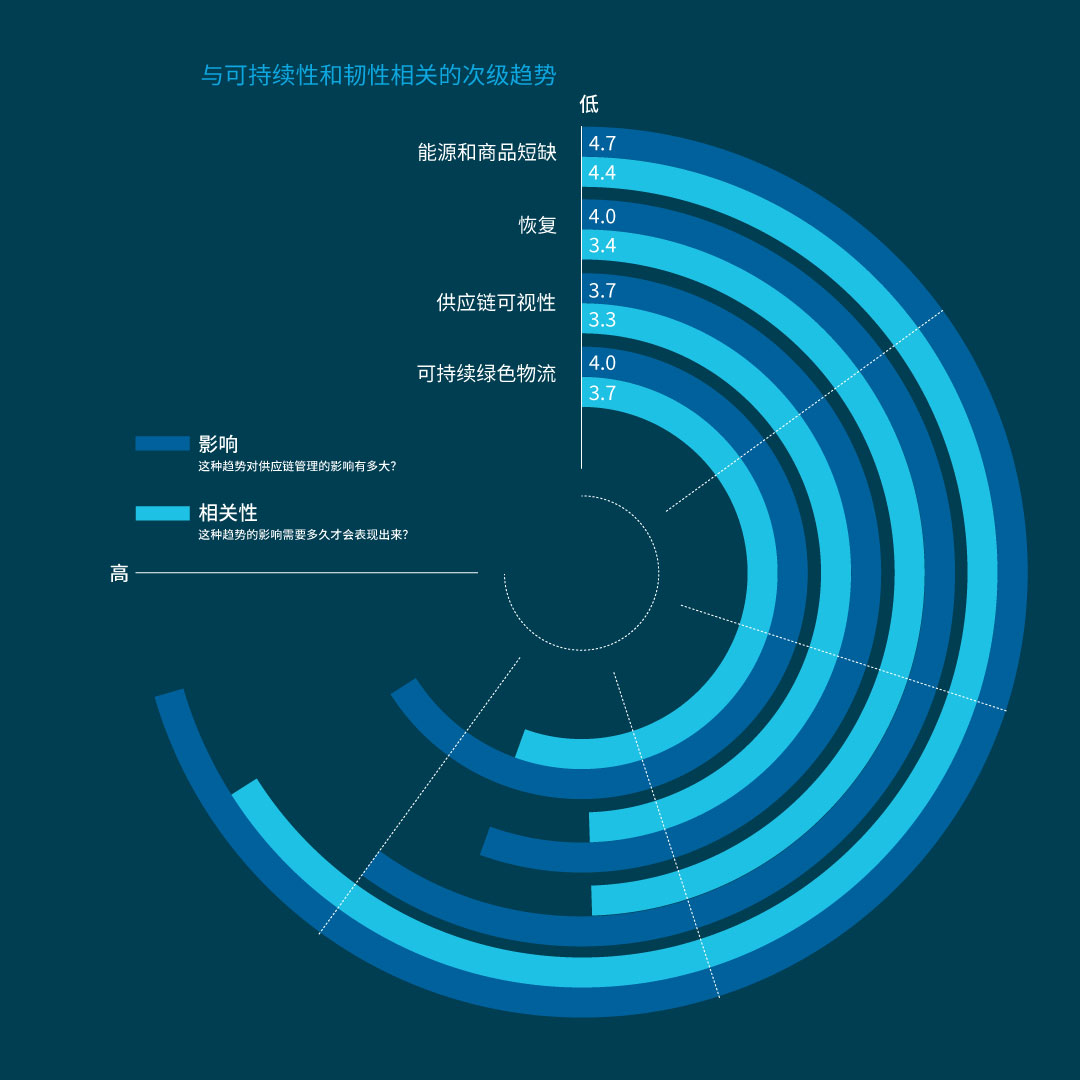 尽管可持续性和韧性是各种长期供应链战略的一部分,但企业却可以即刻从中受益。最初由新冠疫情引发的能源和商品危机如今因乌克兰战争加剧,便是这种二重趋势的一个例子。欧洲的能源和物料短缺使得韧性供应链优势尽显,因为这些供应链可以转而使用能耗较低的运输方式,并从当地采购原料。这种办法不仅可以节省成本,还能保障可行性,同时也进一步向环保可持续运营靠拢。